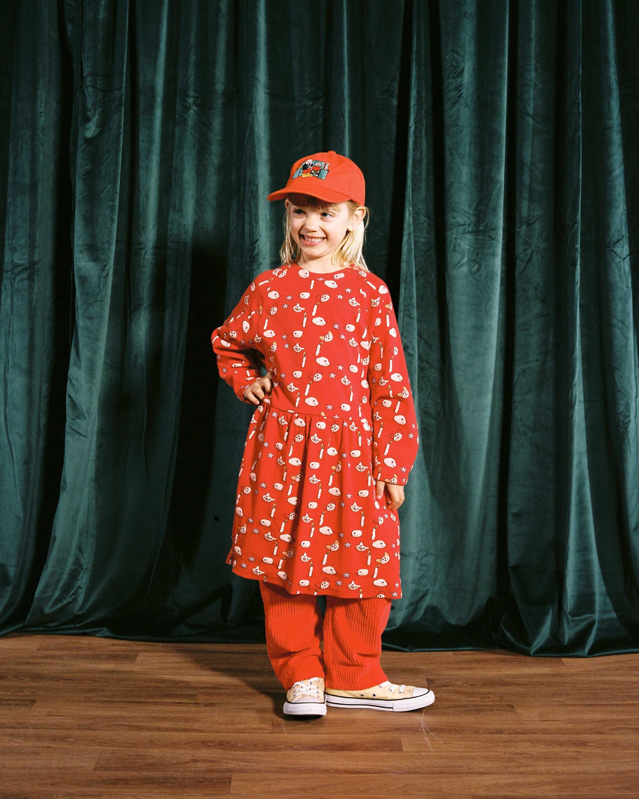 Her vibrant illustrations bring imaginative characters to life in festive, surreal scenes. The playful nature of her strokes and bold color choices perfectly complement our garments, making them a wonderful match for the joyful spirit of the winter season.