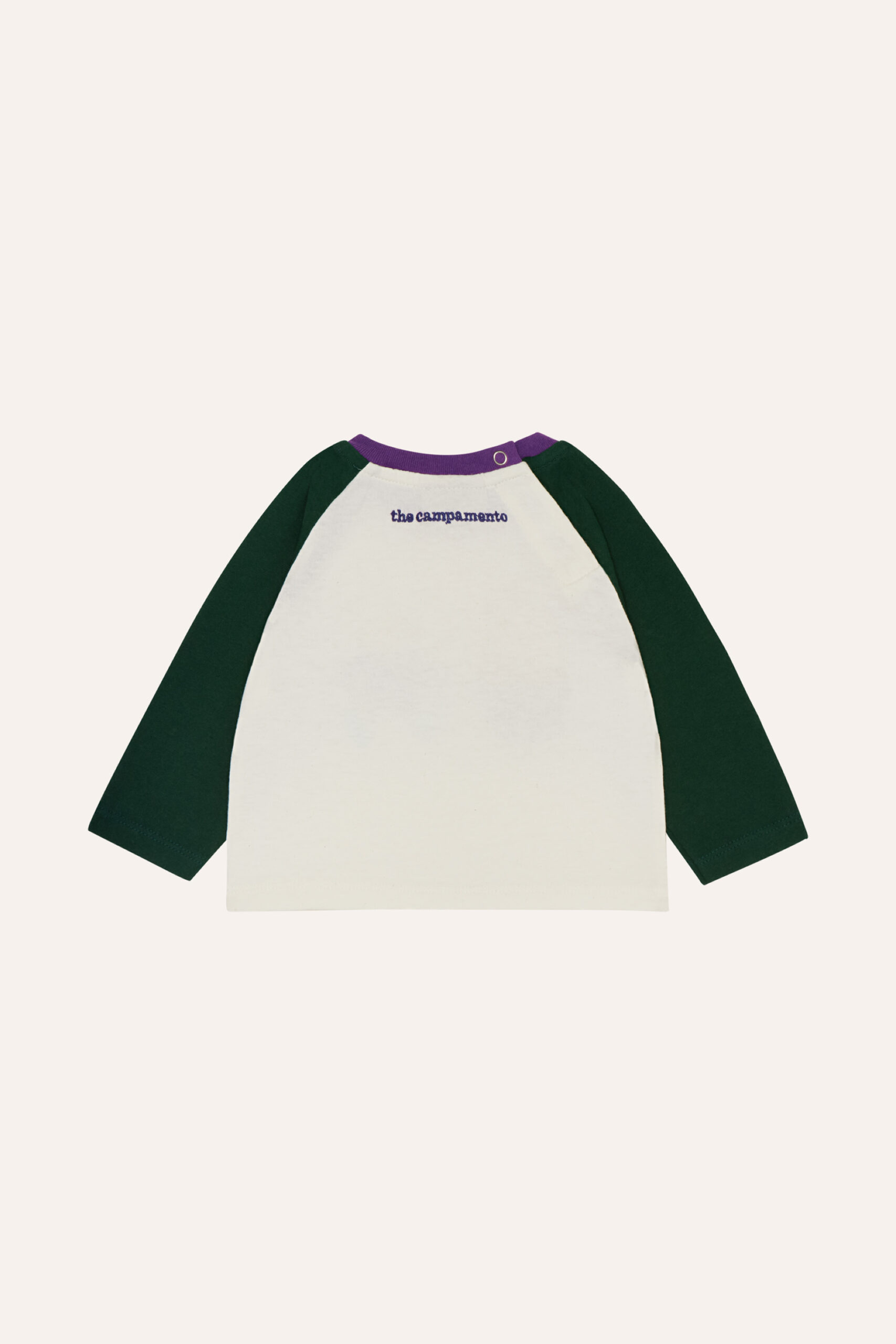 オーバーサイズのスタイルで、柔らかいコットン素材を使用したこのカラーブロックTシャツは、大きなアイスクリームを嬉しそうに追いかける子供のプリントが施されています。このイラストは、ささやかな喜びに夢中になる楽しさを描き出しています。