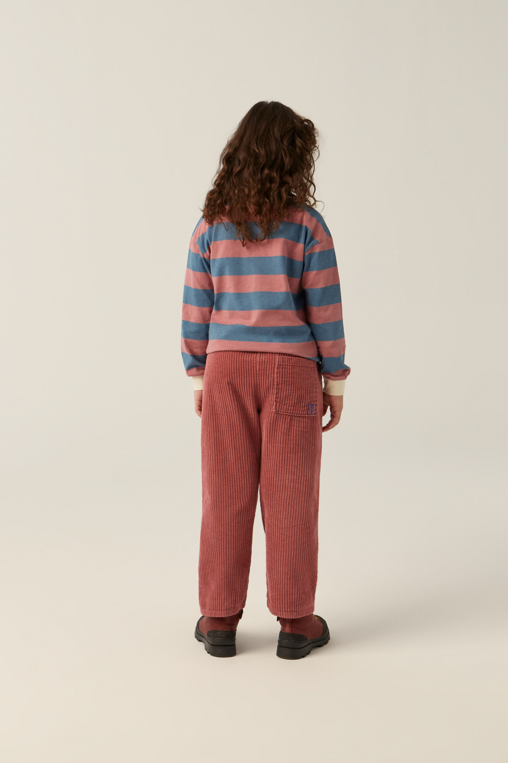 青と紫のストライプがレトロな雰囲気を醸し出すポロシャツ。オーバーサイズフィットで、袖口にはリブが施され、より快適です。冬のどんな服装にも合う、非常に汎用性の高い衣服です。