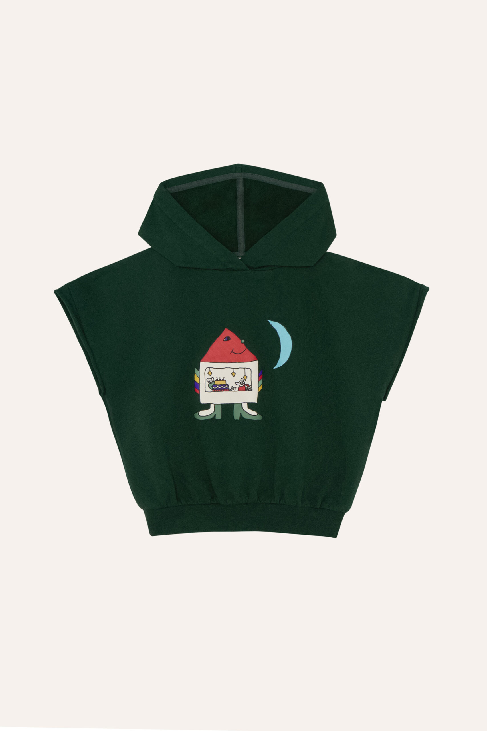 The “Campfire Friends Kids Sweatshirt” is a very comfortable garment with oversized fit. It has a print of two characters sitting around a whimsical campfire. This scene captures the warmth of being together, evoking the feeling of storytelling moments by the fire.
