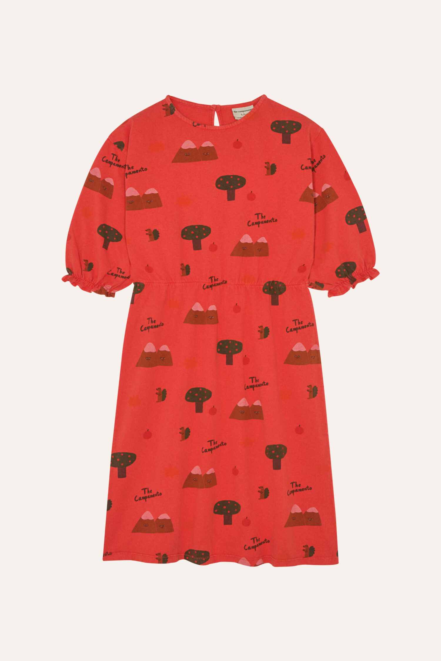 With an oversized and long fit, this dress features an allover print of mountain inspired elements. With medium sleeves and rounded neck it is the perfect garment to give a touch of color to the winter outfits.